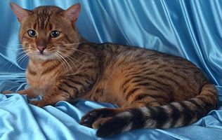 Katzenrasse in einem getupften Muster die aus einer Kreuzung