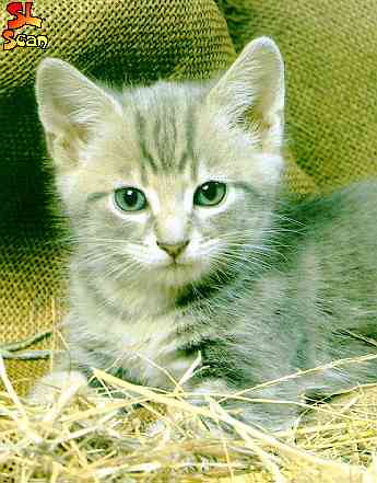 mit mittelgrossen Ohren . Die Augen sind gelb bis orange, können