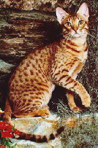 Die Ocicat hat ein geflecktes Fell und ein Tabby-Gesicht . Die